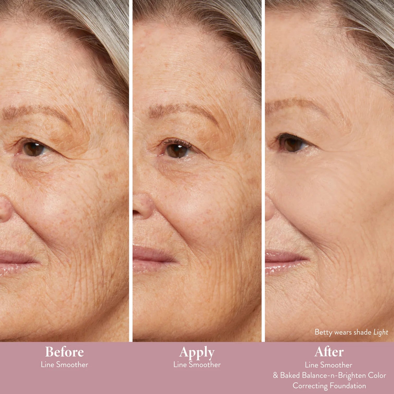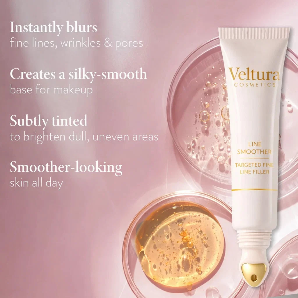 The Line Smoother is a targeted skin-smoothing formula designed to visually soften the appearance of fine lines and texture by filling and blurring them on contact. It doesn’t add color, shimmer, or heavy coverage — it simply helps skin look smoother where lines are most noticeable.